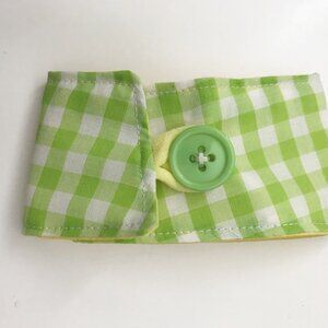 - Made from 100% cotton fabric, Yellow Green Gingham print on front solid yellow fabric on the back.