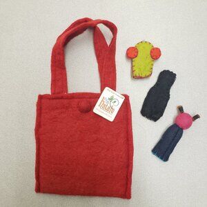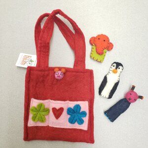 Handmade Fair Trade Puppet Bag with 3 finger puppets