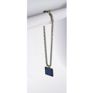 This 18" chain is made from 1/4" silver coloured jumprings and closes with a 1/2" toggle clasp.Hanging from it is a beautiful 1 1/2" blue flowers pendant that I purchased from a local bead shop.