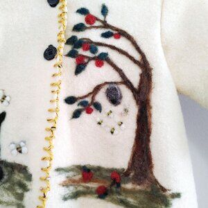 Handmade Girls Wool Hooded Coat 2 Button Graphic Bear Bees Jacket