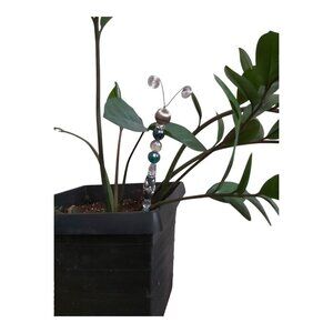 Enhance your indoor garden with this handcrafted 11-inch glass and metal bead caterpillar plant stake. Designed with durable 20-gauge wire, it adds a whimsical touch to any potted plant or terrarium.