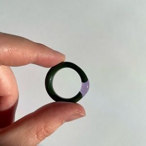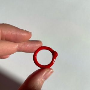 Hand made glass rings. Red ring is a size 6 and the green is a size 10. In EUC.