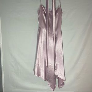 Pale purple homemade dress, details and stain as pictured, liner to dress, made of satin material