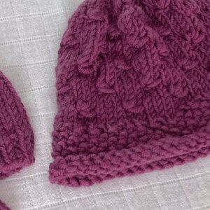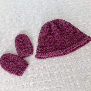 Handmade 🇨🇦 Hand Knit Baby Hat and Mittens Set 0-6M