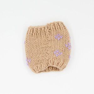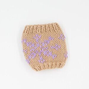 Handmade Hand Knit Beige and Lilac Snowflake Motif Acrylic Mug Cozy