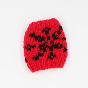 Handmade Hand Knit Black Cherry Red Snowflake Motif Acrylic Mug Cozy