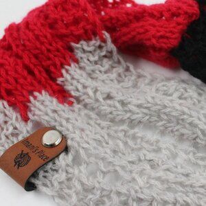 Handmade Hand Knit Cashmere Red Black and Grey Lace Knit Coastal Ear Warmer