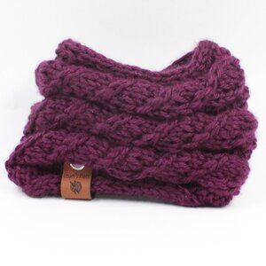 Handmade Hand Knit Cotton Candy Cable Knit Rib Knit Purple Ear Warmer for Kids