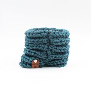 Handmade Hand Knit Round Chunky English Rib Knit Teal Blue Ear Warmer for Kids
