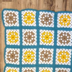 Handmade Hand knit granny square baby blanket 34”x40”