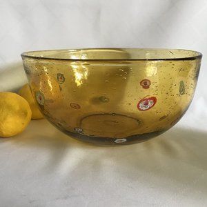 Handmade Handblown Millefiori Large Amber Display Bowl