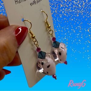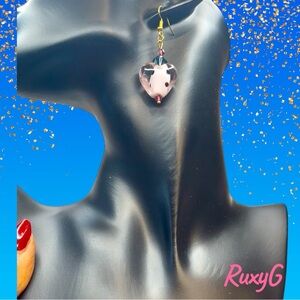 Elegant handmade heart earrings featuring pink ,gray and gold accents. Perfect for adding a touch of charm to any outfit.