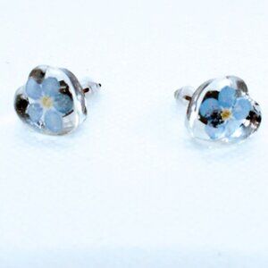 I made these cute stud earrings with real forget-me-not flowers collected from my organic garden. I carefully press dried them and encased in resin. The stud earrings have soft silicon stoppers at the back