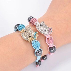 Add a dose of kawaii to your outfit-of-the-day by wearing this super cute braided bracelet! It features a decor shaped like Hello Kitty's head with rhinestone and beads.