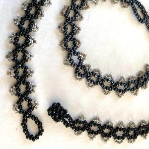 Handmade beaded choker necklace and bracelet set. Purchased from a local artisan market in Hungary. Black and silver beads. Very delicate, intricate pieces. Choker is for small necks at 13" length. Bracelet is 8" length. Very unique set.