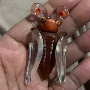 Unique handmade and painted insect figurine brooch. The body of the bug is made from wood. Perfect for collectors.