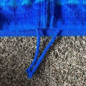 50% Acrylic Such an amazing sweater and like new! So soft. Has 2 adorable pockets on front.