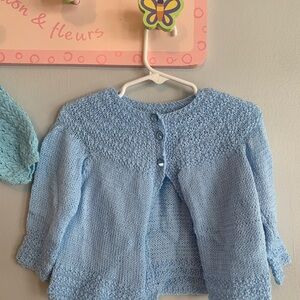 Charming blue and white kids cardigan set, perfect for any occasion. Soft and comfortable for your little one.