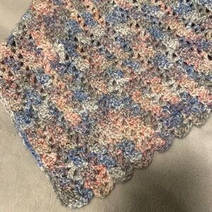 This beautiful handmade knit scarf features a blend of soft colors, perfect for adding a touch of elegance to any outfit. Enjoy the cozy feel and stylish look.
