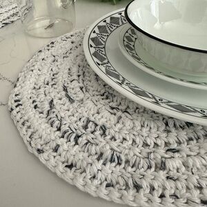 Handmade Knit Place Mats Dining Table White with Grey Flecks Qty 4 MINT Condition