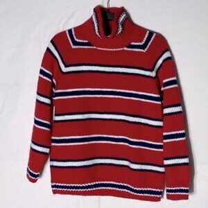 Handmade Knit Red White Blue Striped Turtleneck Sweater M