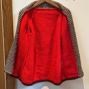 My mom bought this recently at a Christmas Market Vendor Stand. She said the owner was just too lovely not to buy something from. Beautifully knit in an interesting color combo that just works together somehow. Vendor said it was 100% wool.