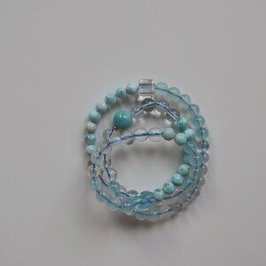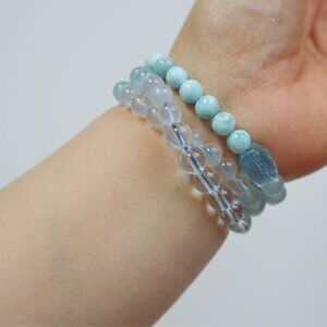 Handmade Larimar Aquamarine Turquoise Blue Moonstone Clear Quartz Bracelet