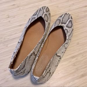 Beautiful handmade embossed leather flats. Snakeskin print. Leather insole. Comfortable 0.75” heel.