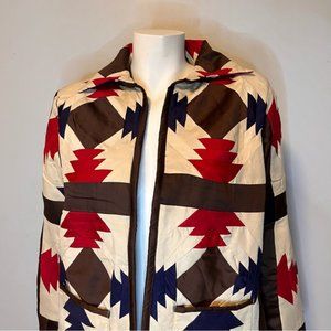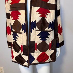This jacket boasts an incredibly soft texture and showcases a captivating checkerboard flying geese pattern.