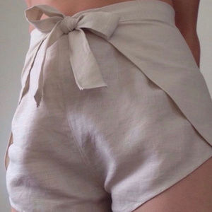 Handmade Linen Wrap Shorts in BLACK