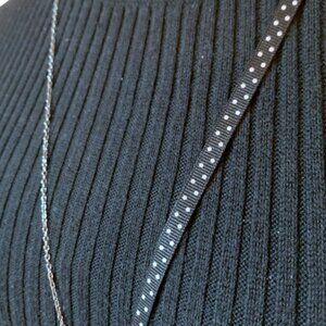 Handmade long necklace with fabric pompom ribbons white black - Charming mixed-detail strap featuring a black ribbon with white polka dots on one side, and a silver-tone chain on the other, finished with a cute little bow.