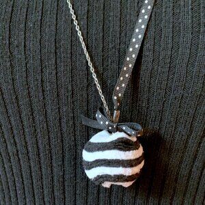 Handmade Long necklace with fabric Zebra B&W pompom Pendant - ribbon