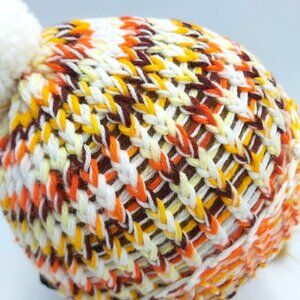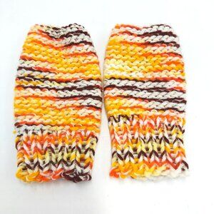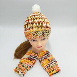Handmade Loom Knit Fingerless Gloves Beanie Hat Toque Pompom Size Small Autumn