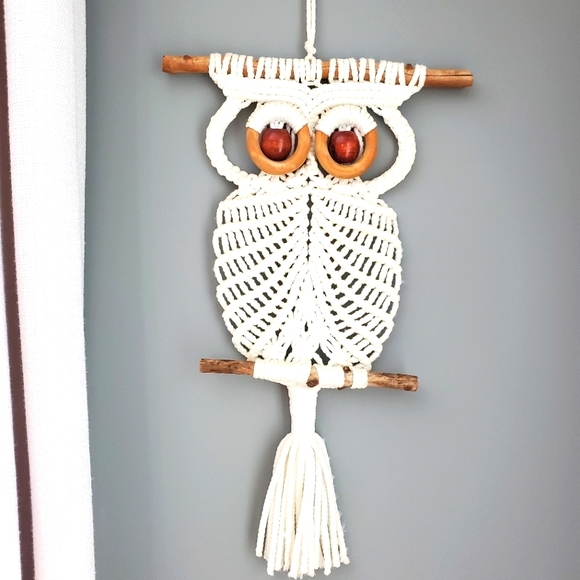 Handmade white macrame owl. Measures 22 inches long. Love it but changing up my decor.