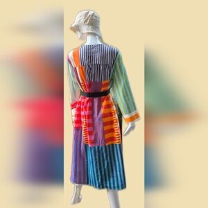 Handmade Maxi, Long Sleeve Cotton Patchwork Dress XL