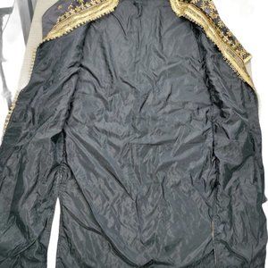 "Handmade Men Size L Vintage Traditional African Boubou Dashiki Robe Kaftan Bubu Brown Long Sleeve V-Neck Floral Polyester Full Length Front Closure Detailed Gold Design Split On Sides