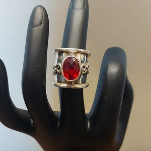 Handmade Mexican 925 Filigree Red Glass Stone Ring