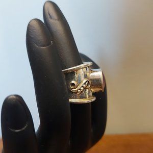 Ring was handmade in Mexico meaning it lacks the precise cuts and angles as if it were made on a machine and favors uneven edges and finishes.