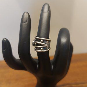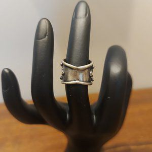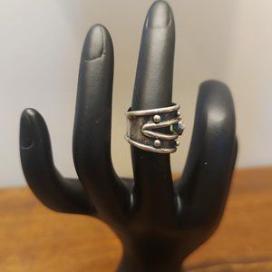 Ring is in Excellent Used Condition, has been in storage for some time. I've intentionally left the ring uncleaned as some prefer the tarnished look over sparkling silver.