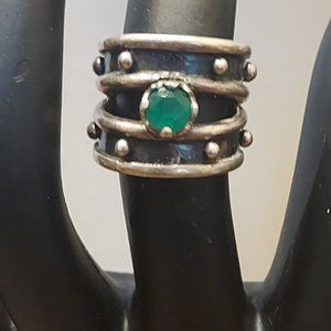 Handmade Mexican 925 Silver Ring w/Glass Stone