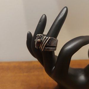 Ring has been resized and in the resizing process the full 925 stamp has been removed. However, "92"" is still visible (See photos), along with the etched artist name on the side of the band (see photos). Ring has been resize to about a 6 to 6-1/2 but can be enlarged.
