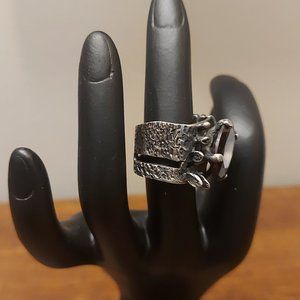 Ring is in Excellent Used Condition, has been in storage for some time. I've intentionally left the ring uncleaned as some prefer the tarnished look over sparkling silver.