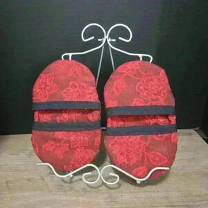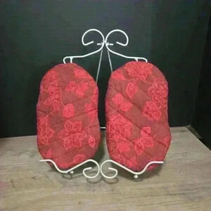 Handmade Microwave Mitts - Regular Size - Burgandy and Red Design - Pair