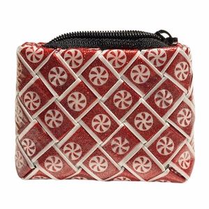 Handmade Mini Coin Purse Candy Cane Red Ribbons Upcycled