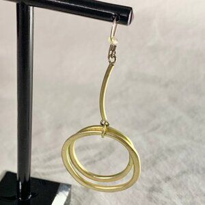 Handmade Modernist Brass Double Ring Bar Drop Dangle Earrings