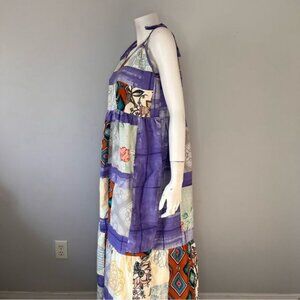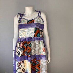 Handmade Multicolor Patchwork Tiered Sundress with Shoulder Straps Size L