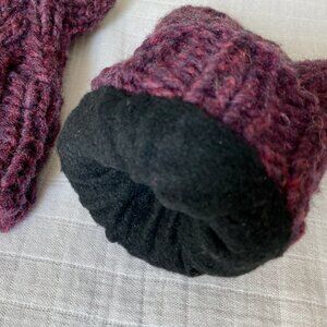 Handmade 🇨🇦 NWOT Hand Knit Wool Mittens wiith Fleece Lining - Cable Knit