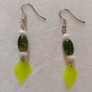 The beads are made of paper from magazines rolled on toothpicks and coated.