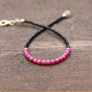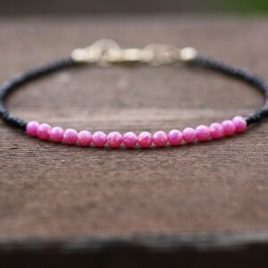Handmade Natural Black Spinel and Pink Opal Bracelet 14k Gold Filled 7"