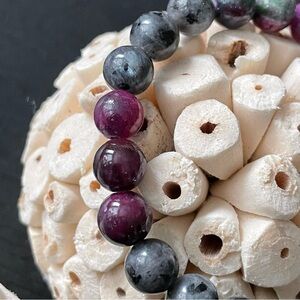 Handmade Natural Stone 8mm Bead Bracelet - Tourmaline & Jasper